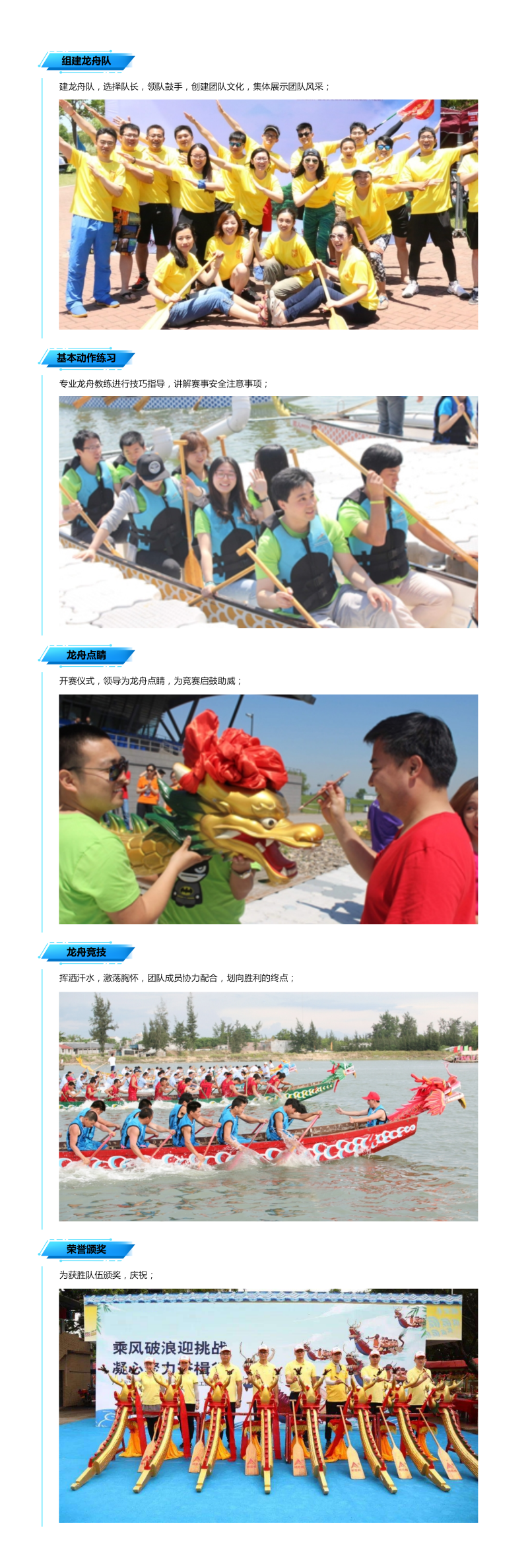 龙是中华民族繁衍发展的图腾,中华民族被称为龙的子孙;龙舟所具有的独特品质正是体现了中国人朴素的哲学基础:“天地人和”。自古以来,龙舟体现着全体成员同心协力共同战胜困难的决心与信心;增强团队的凝聚力;团队目标的实现需要每位团队成员的共同作用;万众一心,方能共享成功!