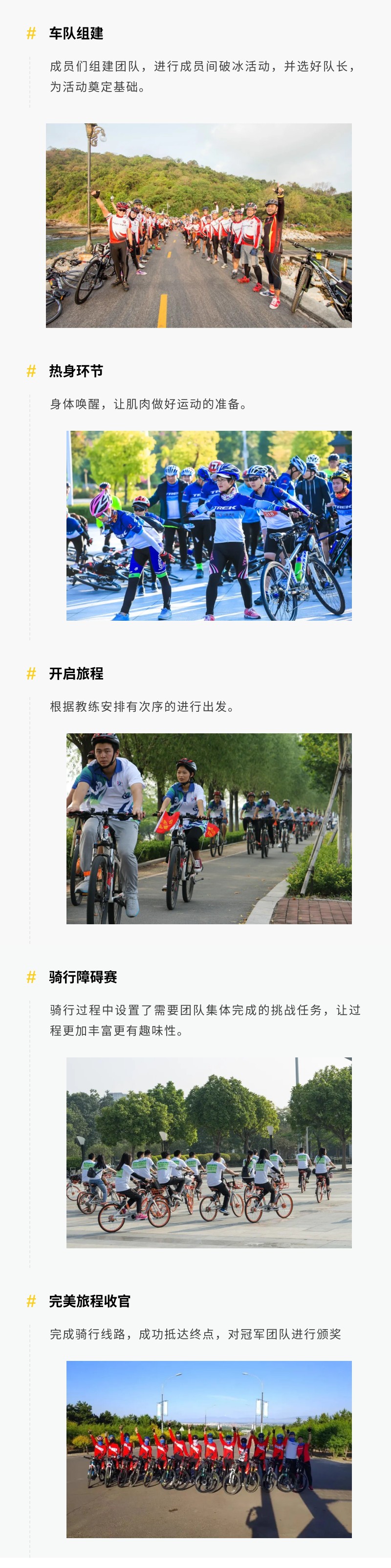 骑行是一种健康自然的运动旅游方式,遵循融入自然、感受大自然本源,感受骑行带来的每一点震撼。团队骑行的意义在于不断迎接困难、协同互助,释放压力。远离城市的喧嚣,到乡村田野里尽情呼吸纯洁的空气。感受轮胎与风擦肩而过的轻快,迷醉于山间的鸟语花香。