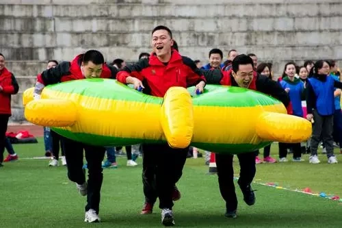 龟兔赛跑游戏赛程为50米,到达对面线后(必须是5名队员全部通过交接区的线以后),将充气龟兔赛跑游戏道具交给另外5名队员,接到充气龟兔赛跑游戏道具的5名队员以相同方式返回。过程中器材里面的人不能倒下,以各参赛队所用比赛器材触及终点线所在垂直平面为计时停止,用时少者为胜者。
