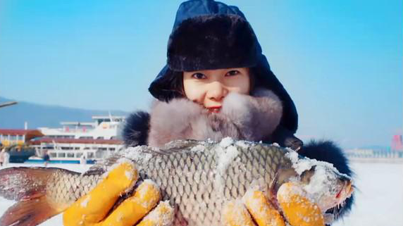 每到冬季,松花江冰层大致有半米多厚,江面成了人们的游玩胜地。