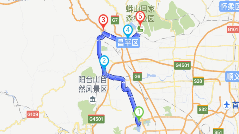 此次路线位置在十三陵水库附近,而蟒山天池也是全国最大的人工天池,海拔568米,库容450万立方米;蟒山国家森林公园位于北京市昌平县东北部,十三陵水库坝东,距京40公里,蟒山国家森林公园森林面积六七百公顷,森林覆盖率达86%以上,所以又称十三陵林场。