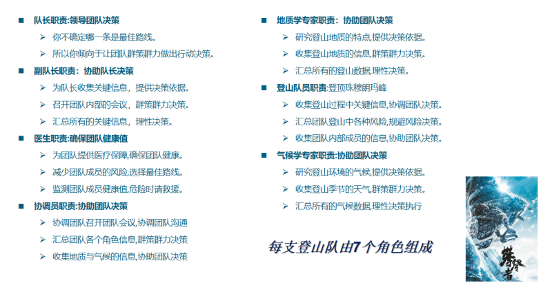 四条登山路线:根据登山路线选择可以判断团队价值观和行为方式;