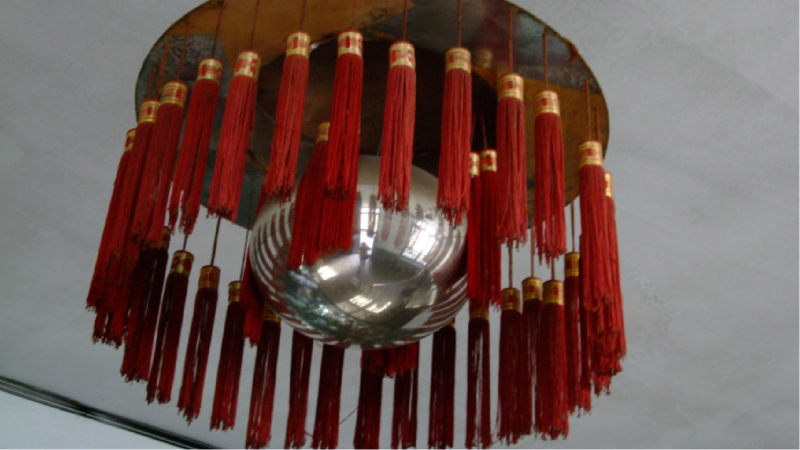 一个挂在天花板上的水银玻璃球,据说为乔家从美国进购来。会按一定比例缩小所挂屋中人的影像在球上。当年乔家会客谈生意时挂房上以用来监视屋中人,可称为世界上第一个监视探头,为当时极罕见之物。