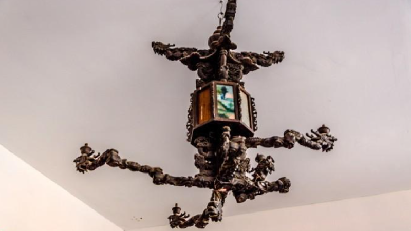 山西祁县乔家大院民俗博物馆藏精品之一,清代,红木。昔日慈禧太后在八国联军侵华而逃向西安时,乔家捐赠30万两银子与太后以解燃眉之急。后慈禧太后为感谢其忠诚而赏赐了两盏九龙灯。