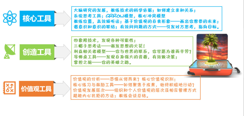 《赋能教练》课程能从拓宽人的信念和改变人的心态入手,着眼于人的自我超越和心智模式的改善,以突破自我、挖掘潜能、发现更多的可能性,最后达到想要的成果。