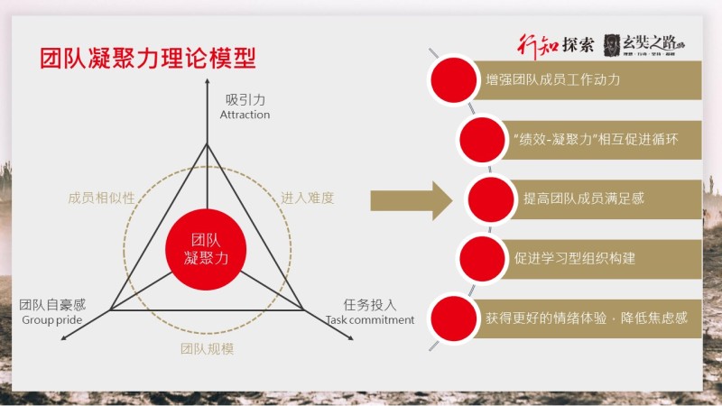 社会科学家多年来的研究表明,提高团队吸引力、团队成员自豪感以及工作投入是团队凝聚力形成与发展的关键。