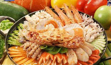 三亚靠近大海。海鲜当然是它的特色之一。海鲜火锅是由三亚当地的海鲜制成的。虾、蟹、蜗牛、贝类和鱼都有。只有姜片和蒜苗被放在火锅的底部调味。目的是保持原有的味道和风味,特别是突出海鲜独特的甜味和营养。