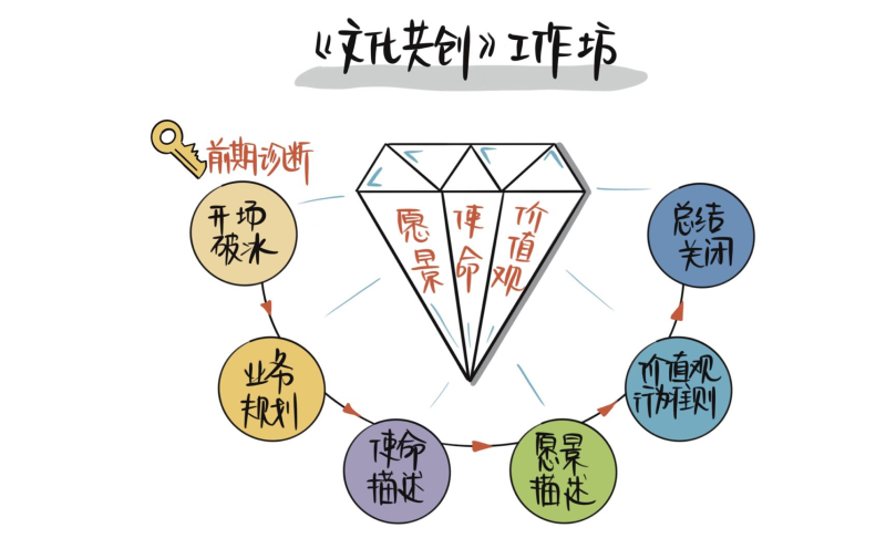 文化共创主题工作坊有两种方式可以展开,一是基于公司已有的愿景使命价值观需要修订,二是新组建的公司或团队需要设计愿景使命价值观,通过工作坊可以促进对话,达成共识,形成一致性的认同。