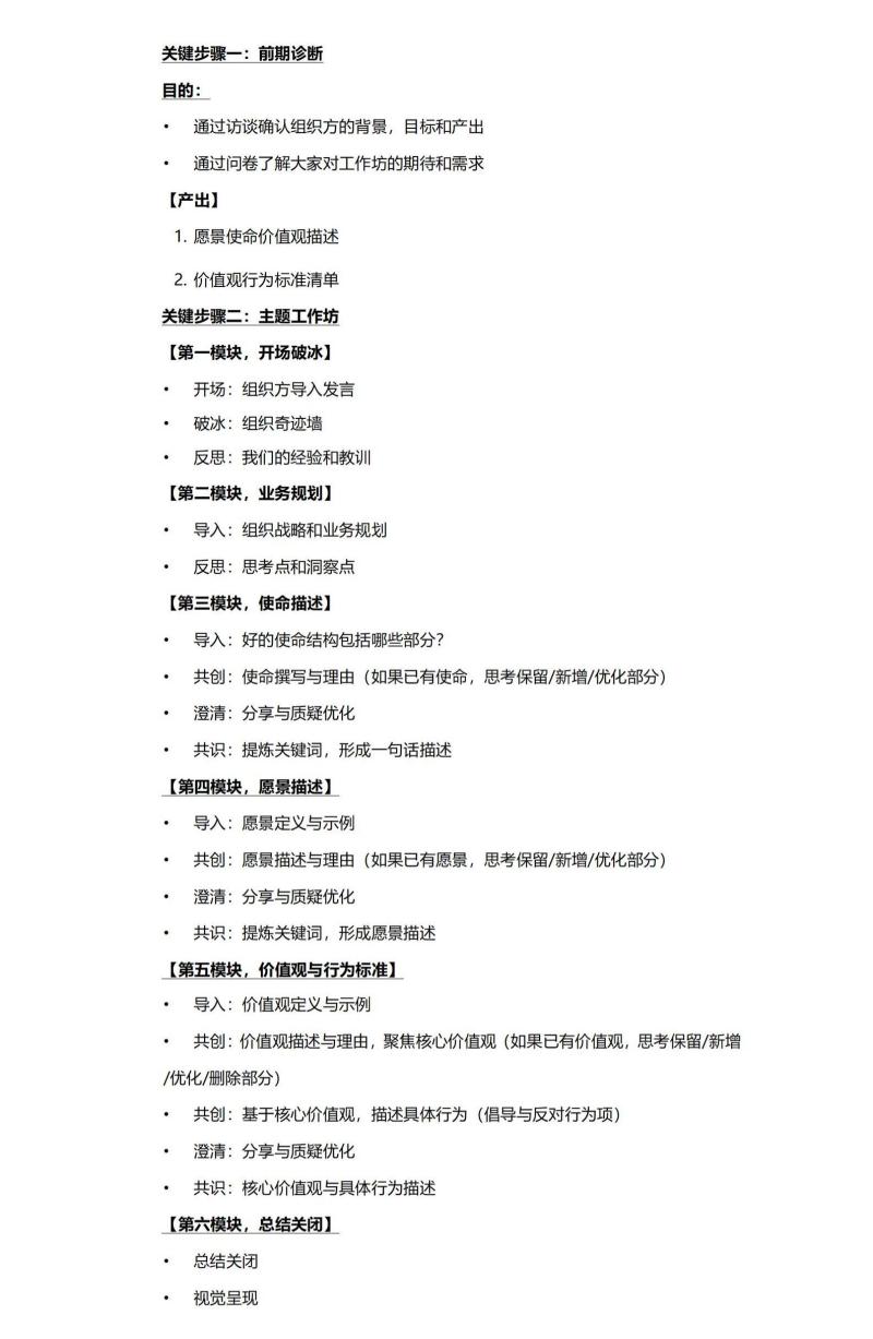 1.形成愿景使命价值观描述,共识价值观的行为标准