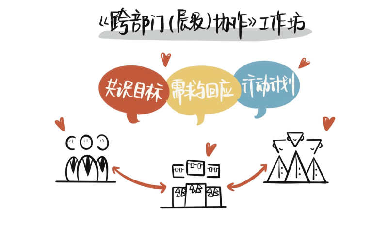 跨部门(层级)协作主题工作坊,从分歧的起点出发,从事实层面,立场层面,组织因素层面挖掘症结点,通过结构化的澄清和对话过程,聚焦共同目标,澄清事实,探询假设,寻求包容性解决方案,促进跨部门团队的真正共识。