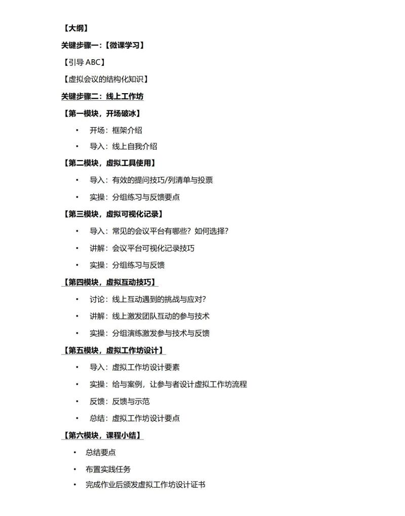 •学会设计半天的虚拟工作坊设计并能组织实施