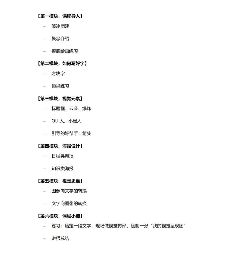 视觉海报及视觉同传在企业内训课程或工作坊中应用十分广泛,深受参与学员及参会人的喜爱。视觉的应用将抽象的概念变的可触摸、更容易记忆,创造可持续性的学习过程,搭建理解共识的桥梁和对话的平台。本课程包括视觉呈现的概念、文字、元素、思维转换及练习反馈,深入浅出,快速入门即可转化应用。
