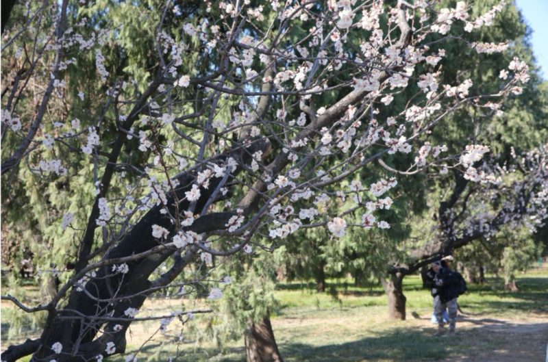 北京植物园100多个品种、1000余株梅花次第开放,为早春增添亮丽的色彩与幽香。