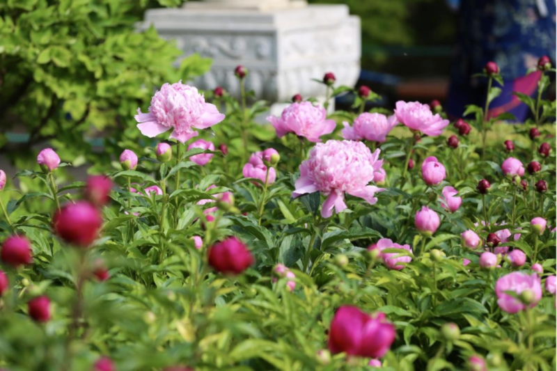 天坛公园百花园中40余种、近800株芍药争相绽放,成为市民观花赏景的好去处。