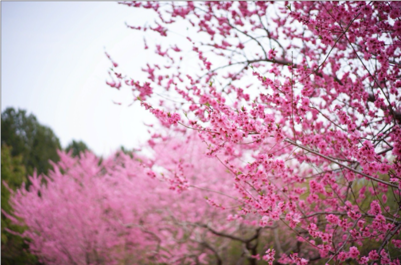 北京植物园是目前全国规模最大的桃花专类园和品种资源圃,每年桃花观赏季,可以观赏到碧桃园内红白碧桃、绛桃、寿星桃、菊花桃等近70个品种、3000余株桃花。其中,“品霞”和“品虹”分别被誉为北京植物园桃花的花王和公主,它们都是北京植物园与林业大学合作完成的拥有自主知识产权的桃花品种,花开时单树成景,如粉红云霞,极其艳丽。