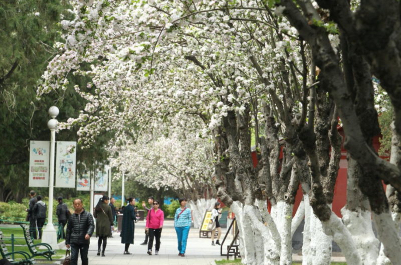 四月初的海棠花路,是清明假期北海公园内一道靓丽的风景,20余株西府海棠盛开,走在花意浓郁的公园甬路上,心情会如春风般愉悦。