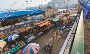 札嘎其市场指的是从影岛大桥底下的干鱼市场至忠武洞早市区一带,这是韩国最大的水产市场。朝鲜战争以后定型为活鱼市场,该市场是釜山的代表,闻名于全国。在这里,根据海鲜的种类,以2人份为基准的话,大概消费在2~6万韩元左右,就可以吃到新鲜的生鱼片。随着和新东亚市场,干鱼货市场的联合,规模日益庞大,并且这里地道的庆尚道方言,也给海外游客留下深刻的印象。