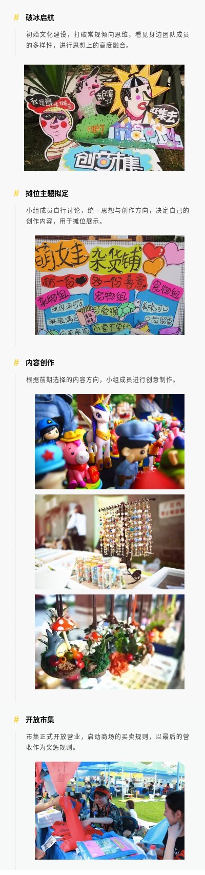 《创意市集》缘起于特定场地展示、售卖个人原创手工作品和收藏品的文化艺术活动。创意集市已成为城市魅力的一部分,许多具天分的人在集市中被发掘出来,团建的创意市集结合了活动形式的优势,让团队成员的个性化能有充分的展示空间,展现个性化的同时使团队成员更加相互了解,为后期的沟通与理解奠定了基础,让办公室的社交更加便捷高效。