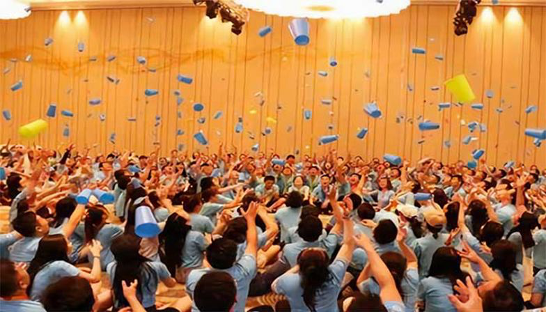 随着美妙的音乐,学员们席地而坐,变花样“玩”塑料杯,翻、传、扣、击个掌...让人眼花缭乱,杯子舞独具特色,让现场所有人都沉浸在轻松愉快的节奏中,杯子舞主要以两个节奏为主线,可自行进行延生变化。