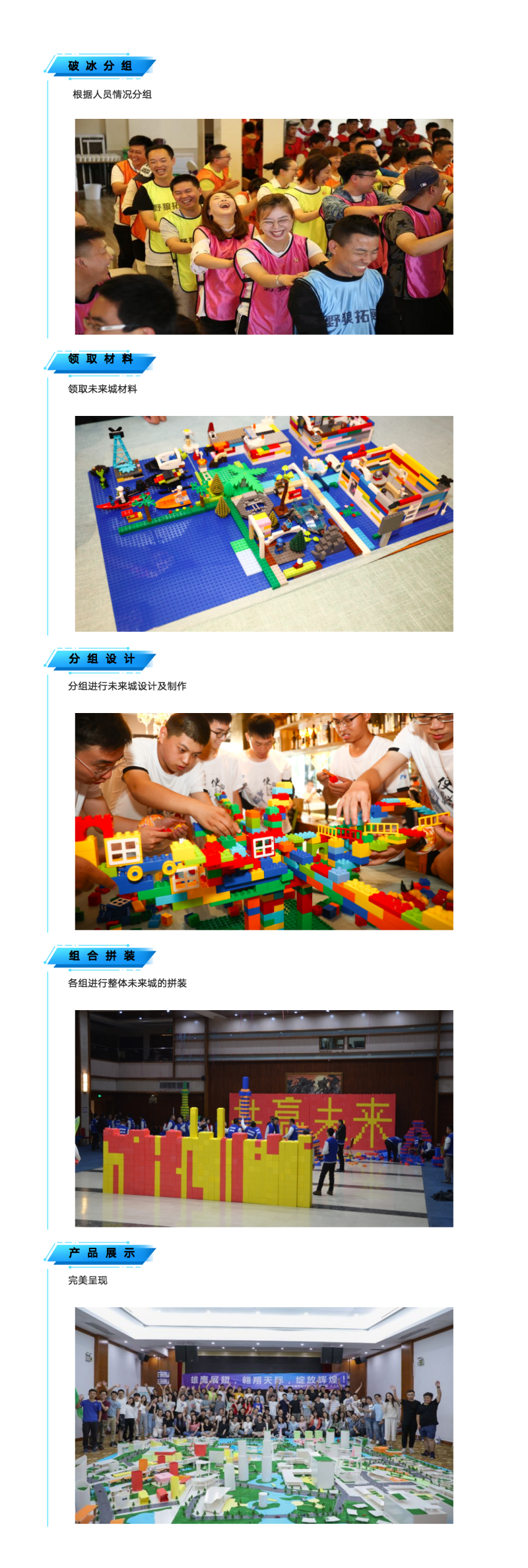全新的创造未来城旨在通过“返老还童式“的乐高体验,通过现有资源,构建出一个产品,从时间、质量、高度、宽度、稳定性等角度评比考量。让大家通过乐高积木的主题创造,去克服期间遇的问题,发动个人智慧与团队协作,不断寻找新的可能性,创造更精彩的未来城“!